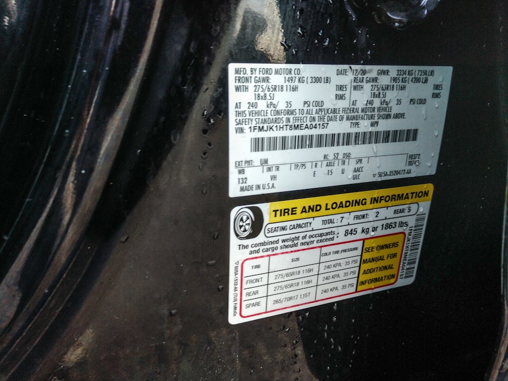 Equipment Group 201A Mid Package: 18" Machined-Face Aluminum Wheels; 3rd Row Vinyl Seat; 3.5L EcoBoost V6 Engine; ActiveX-Trimmed 1st and 2nd Row Seats; P275/65R18 AS BSW Tires; SecuriCode Keyless Entry Pad; 7. 300 lbs GVWR; 3.31 Axle Ratio; AM/FM Stereo with MP3 Capable. 2nd Row ActiveX Captains Chairs with Armrest. **Equipment listed is based on original vehicle build and subject to change. Please confirm the accuracy of the included equipment by calling the dealer prior to purchase.**