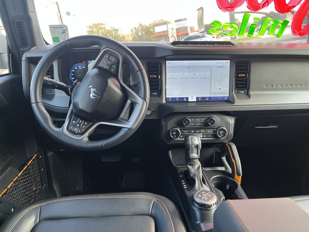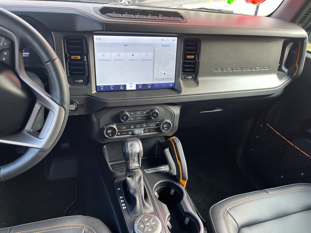 Enjoy the heated seats in the Ford Bronco you will never buy a vehicle without them. Everyone loves the comfort of having a warm seat on those cold winter days. An off-road package is equipped on this 1/2 ton suv. Start this model from inside with remote start. Bluetooth® technology is built into this model, keeping your hands on the steering wheel and your focus on the road. This model has automated speed control that adjusts to maintain a safe following distance, enhancing highway driving convenience. Good News! This certified CARFAX 1-owner vehicle has only had one owner before you. This 1/2 ton suv offers Android Auto for seamless smartphone integration. Protect this unit from unwanted accidents with a cutting edge backup camera system. Our dealership has already run the CARFAX report and it is clean. A clean CARFAX is a great asset for resale value in the future. This model keeps you comfortable with Auto Climate.The vehicle features a hands-free Bluetooth® phone system.This 1/2 ton suv warns of approaching vehicles with Cross-Traffic Alert.This vehicle is a certified CARFAX 1-owner.
